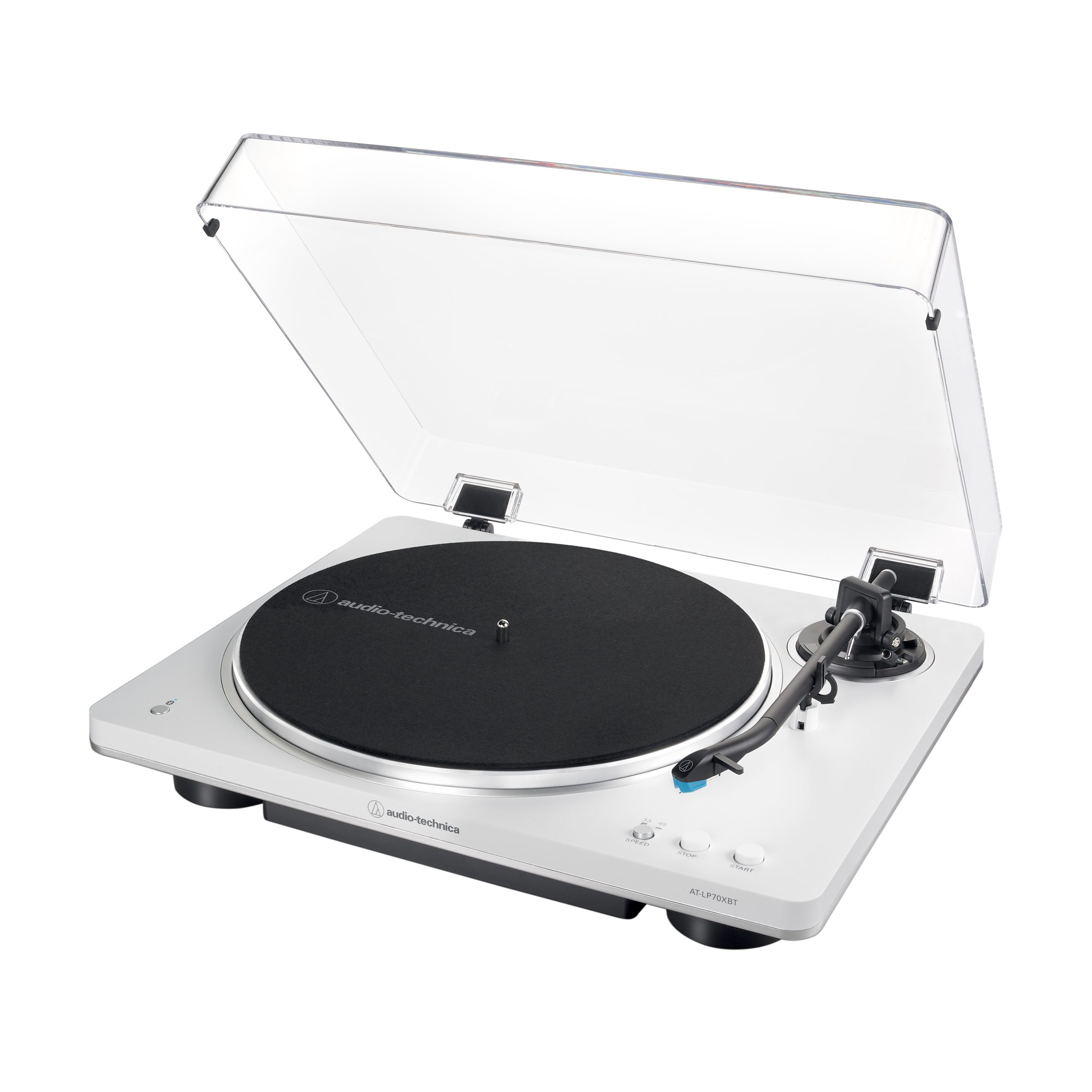 The AT-LP70XBT Automatic Wireless Turntable is the perfect beginner turntable for those beginning their audiophile journey. Combining the experience of warm, analog audio with the convenience of Bluetooth® technology, you can listen to your vinyl over Bluetooth-enabled speakers, headphones, or other devices, including those that support the high-quality Qualcomm® aptX™ Adaptive audio codec. This user-friendly turntable plays both 33-1/3 and 45 RPM records and, in addition to its Bluetooth wireless technology, has a built-in switchable phono preamp that allows the turntable to connect to a home stereo, powered speakers, or another component, with or without a dedicated phono input.