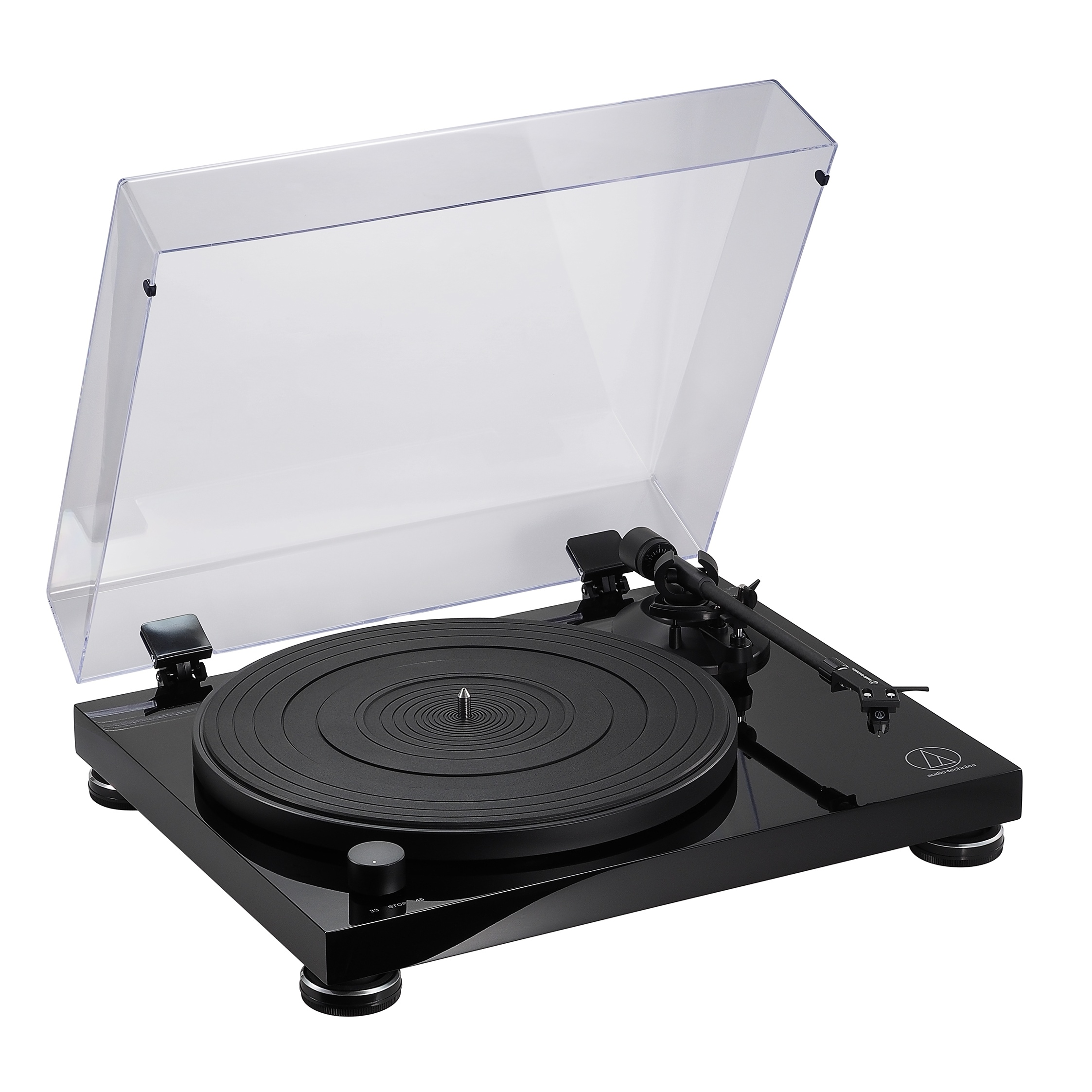 • Fully manual, belt-drive operation with two speeds: 33-1/3 and 45 RPM