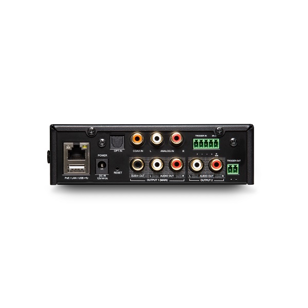 The CI S1 has a comprehensive set of inputs and outputs available, ensuring that any source, whether cloud or direct, can be connected and streamed wherever the client wants it. With WiFi and ethernet, digital and analogue audio inputs with signal sensing, sub out, and assignable 12V trigger in and 12V trigger out, it offers integrators an unprecedented amount of flexibility in connectivity.